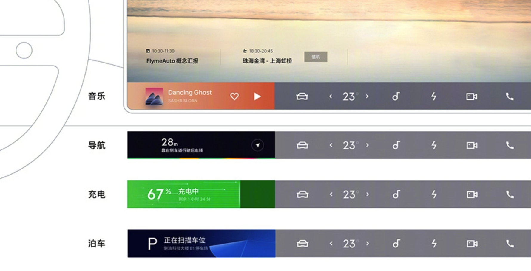 首要,咱们能够看到魅族科技在这方面做的调整,其刚刚发布了FlymeAuto车机体系,该体系作为魅族 Flyme 在智能座舱上的连续,相同采用了Alive Design 规划理念,能够为车机体系带来全新 Smart Bar、小窗形式、节日桌面这三大功用。FlymeAuto车机界面Dock栏能够显现更多要害信息,如音乐播映、地图导航、泊车辅佐等内容,智能匹配多种场景需求;一同小窗形式的运用,也能免除重复切换不同运用的繁琐。从运用作用来说,这个规划更挨近智能手机。别的,针对是非配的传统车机布景,FlymeAuto也支撑依据节日实时更新的节日桌面。在未来,咱们应该会看到魅族的车机体系在吉祥的车型中呈现。