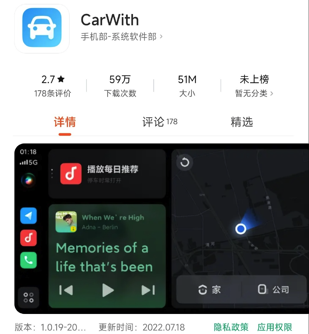 小米在智能驾驭、芯片、电池等范畴均先后出资了数十家轿车产业链企业。“CarWith”是小米打造的车机互联体系。用户经过CarWith衔接手机与轿车,能够完成在轿车中控屏上运用手机中的导航、音乐、电话等运用服务,与苹果的CarPlay以及华为的HiCar等功用类似。小米造车项目始于上一年3月份,估计首款车型将于2024年上半年量产上市,那么它必将首先搭载小米的CarWith车机互联功用。不过,现在这个车机体系的信息还比较有限,咱们会持续坚持调查。